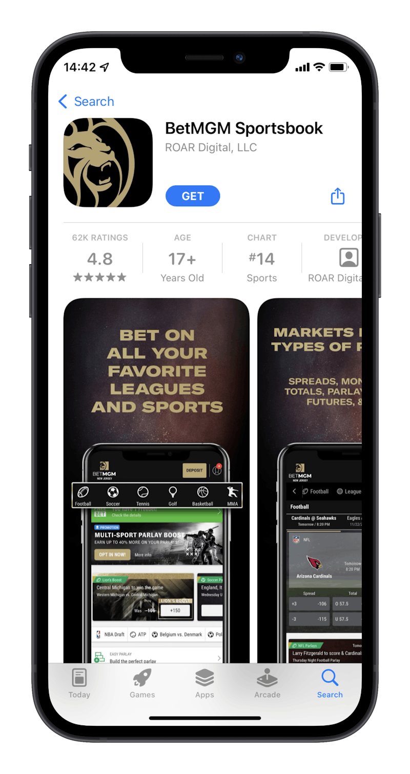- Once you have found the BetMGM app on either the App Store or Google Play press the 'GET' button (on iOS) or the 'Install' button (on Android)