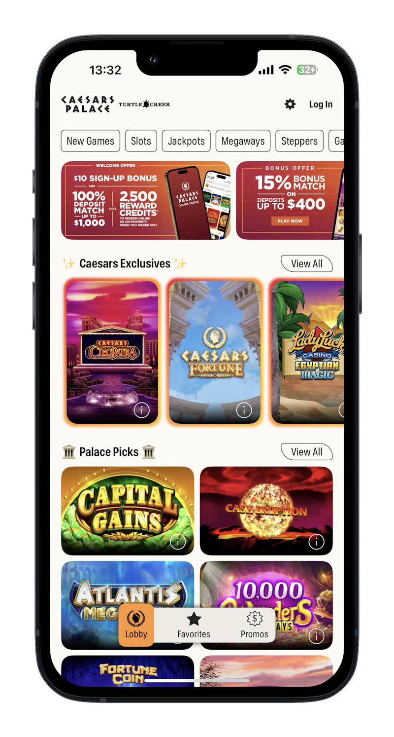 Get a $10 Bonus & 100% Deposit Match up to $1K & 2500 Reward Credits® when you wager $25+ Must be 21+. New Customers only. MI/NJ/PA/WV only. $10 Registration Bonus awarded upon successful registration and verification. 1x wagering requirement applies to registration bonus. New users and first deposit only. Wager $25+ to receive 2,500 Reward Credits. Max. deposit-match bonus of $1,000. 15x wagering requirement applies to deposit bonus. Minimum wagering within 7 days required to unlock bonuses. Void where prohibited. Full terms and wagering requirements at Caesarspalaceonline.com/promos. | |||||