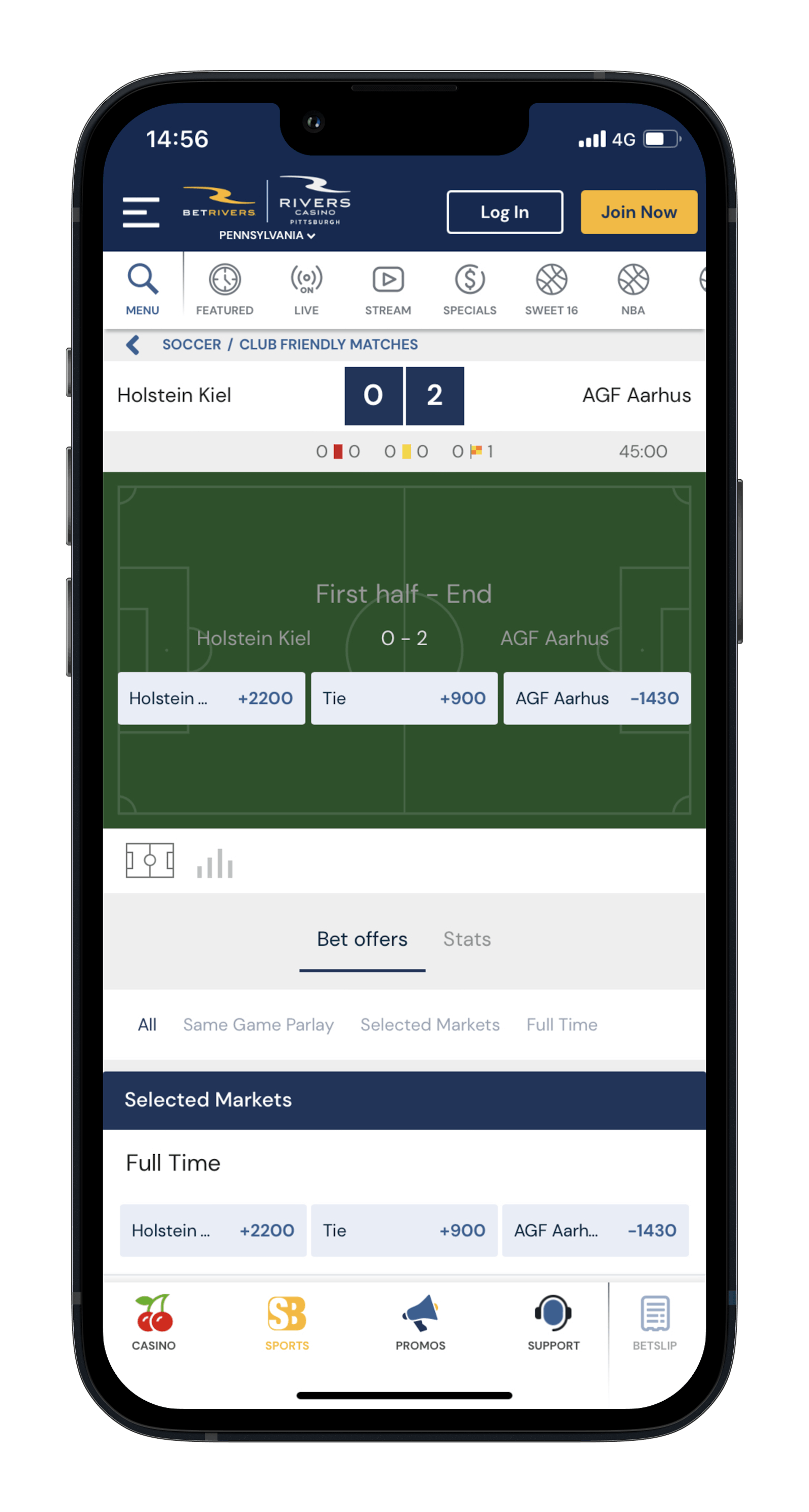 Access the sportsbook via your desktop or, better still, download the BetRivers Sportsbook app for iOS & Android.