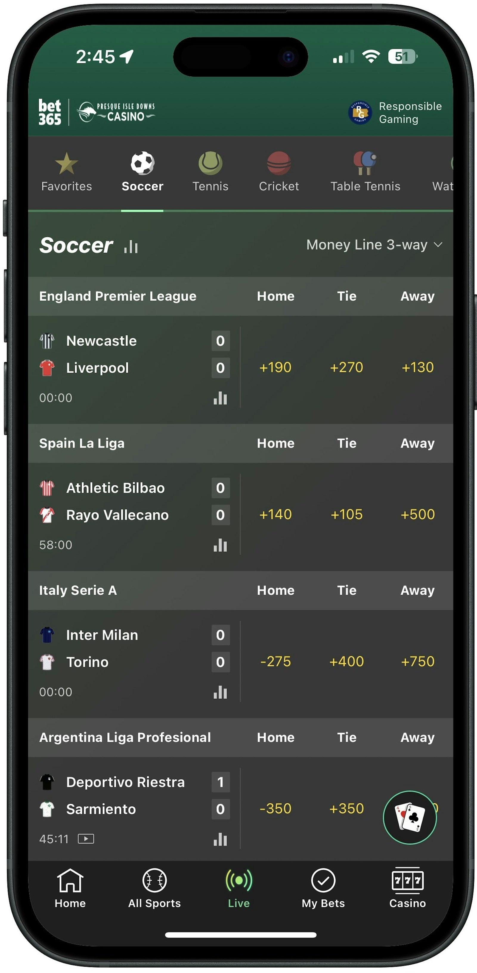Choose your offer: Get $200 in Bonus Bets After Your First Real Money $5 Wager or Get up to $1,000 Back in Bonus Bets if Your First Wager Loses 21+. New customers only. Limit one bonus per user. Offer available in AZ/CO/IA/IN/KY/LA/NJ/NC/OH/VA. Different offer(s) available in IL/PA/TN. First online real money wager for both offers. $10 first deposit required within 30 days. Minimum wager of $5 required to claim the $200 Bonus Bets. Must contain at least one selection at odds of -500 or greater. Loss refunded as bonus bets up to $1,000 with Safety Net Offer. Bonus issued as non withdrawable bonus bets that expire in 7 days. Deposit required. Paid in Bonus Bets. Bonus Bets wager excluded from returns. New customers only, time limits and T&Cs apply. See full T&C at Bet365. #ad | |||||
