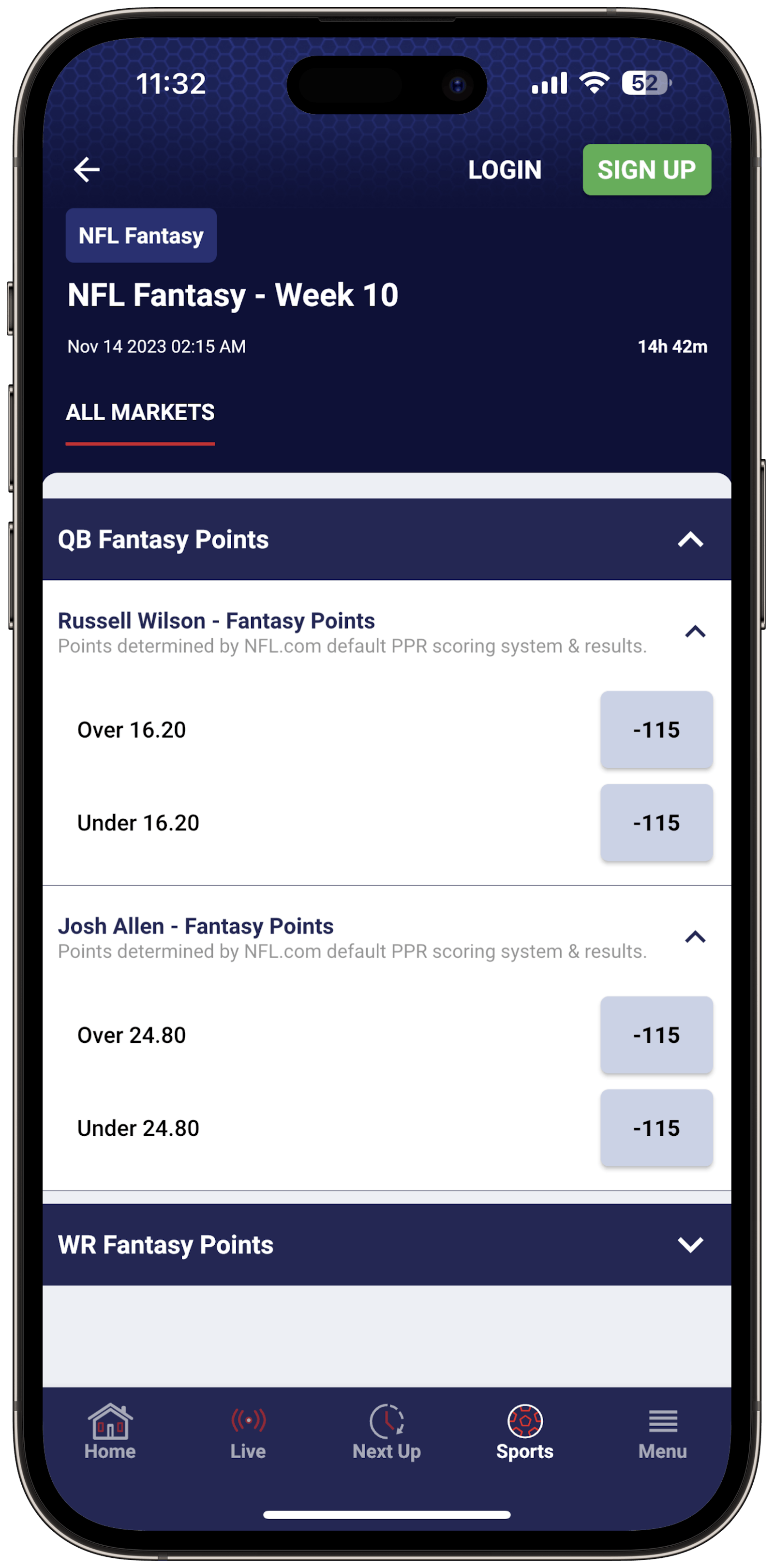 100% Bet Match up to $50 on Your First Wager Each Week for Your First Five Weeks
