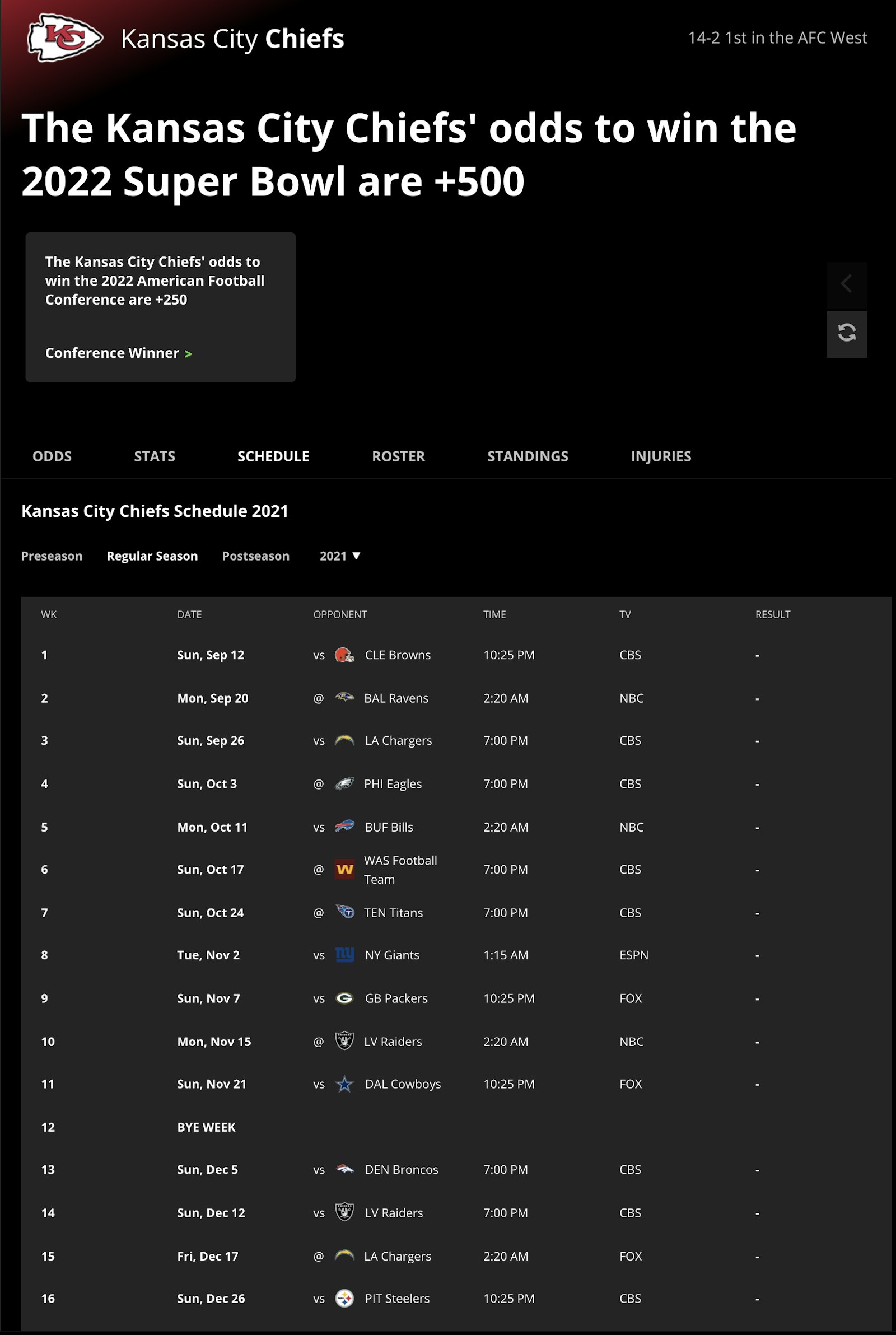 - Minimum odds: -500