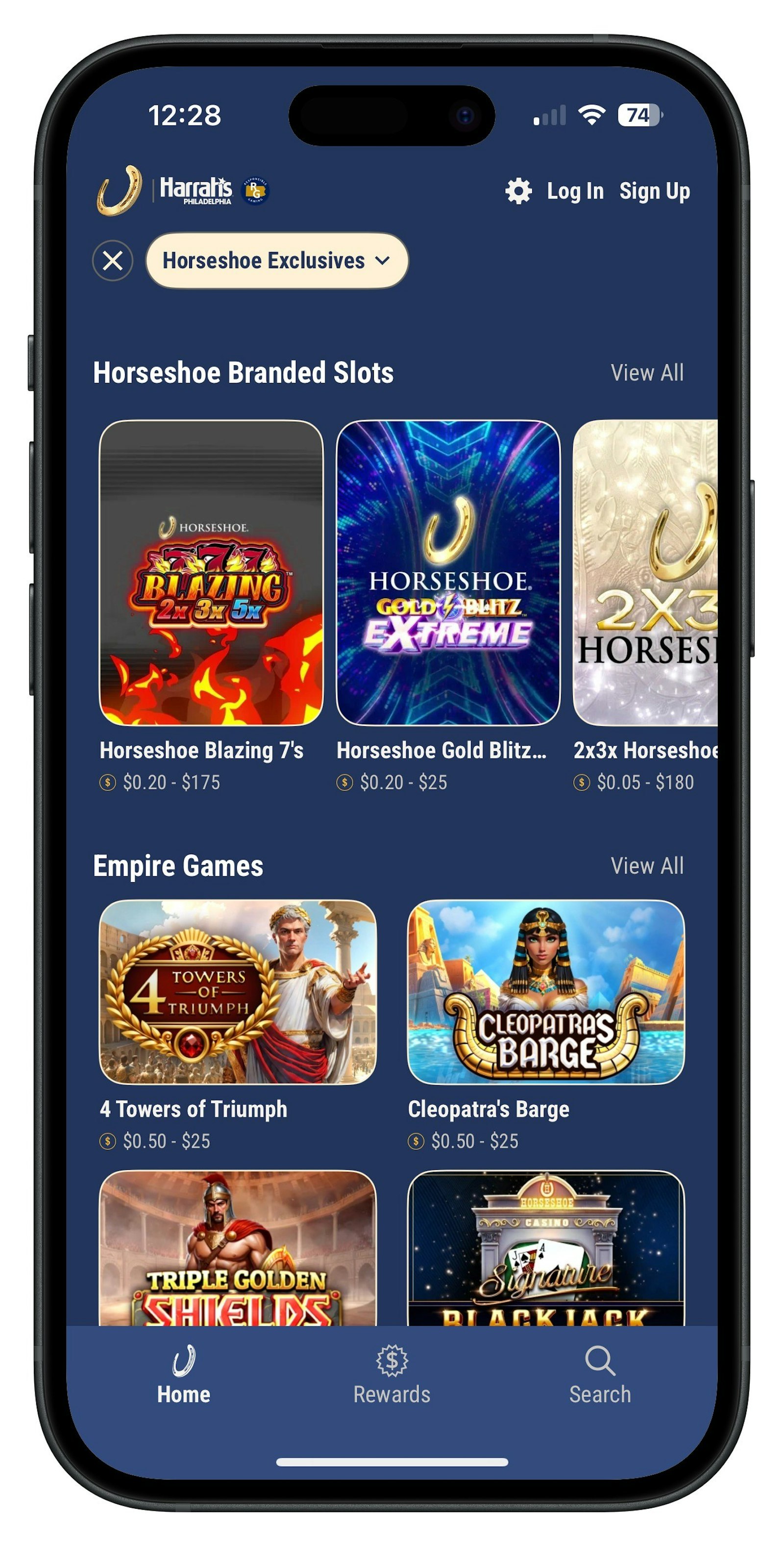 There are 24 unique titles exclusive to Horseshoe Online Casino. Whether it's Empire Games, Horseshoe Branded Slots, or the signature Blackjack Surrender, enjoy the games you can't find anywhere else in Horseshoe's Exclusives section.