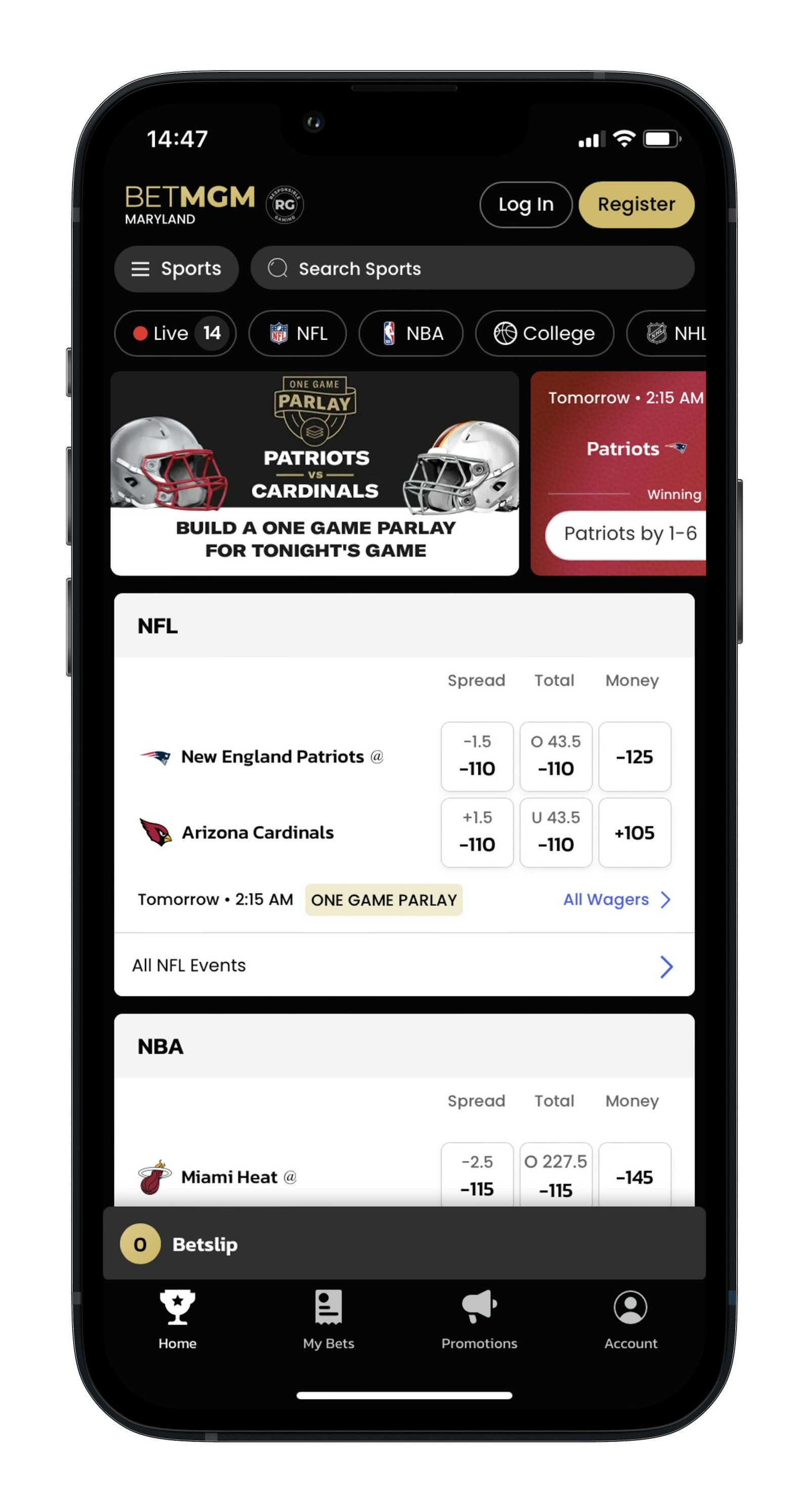 Up to $1,500 Back in Bonus Bets if Your First Wager Doesn't Win 21+. New users only. Offer available in AZ/CO/IL/IN/IA/KS/LA/MD/MA/MI/NJ/OH/PA/TN/VA/WV/WY. Different offer available in NC. Offer not available in NV/NY/PR. Qualifying deposit (min $10) and first real money wager required. If qualifying bet settles as a loss, user is refunded 100% in non-withdrawable bonus bets up to $1,500. Rewards are non-withdrawable bonus bets that expire in 7 days. See full T&C at BetMGM. 21+. Bet Responsibly. Gambling problem? Call 1-800-GAMBLER. NY: Call (877-8-HOPENY) or text HOPENY (467369). 21+. | |||||