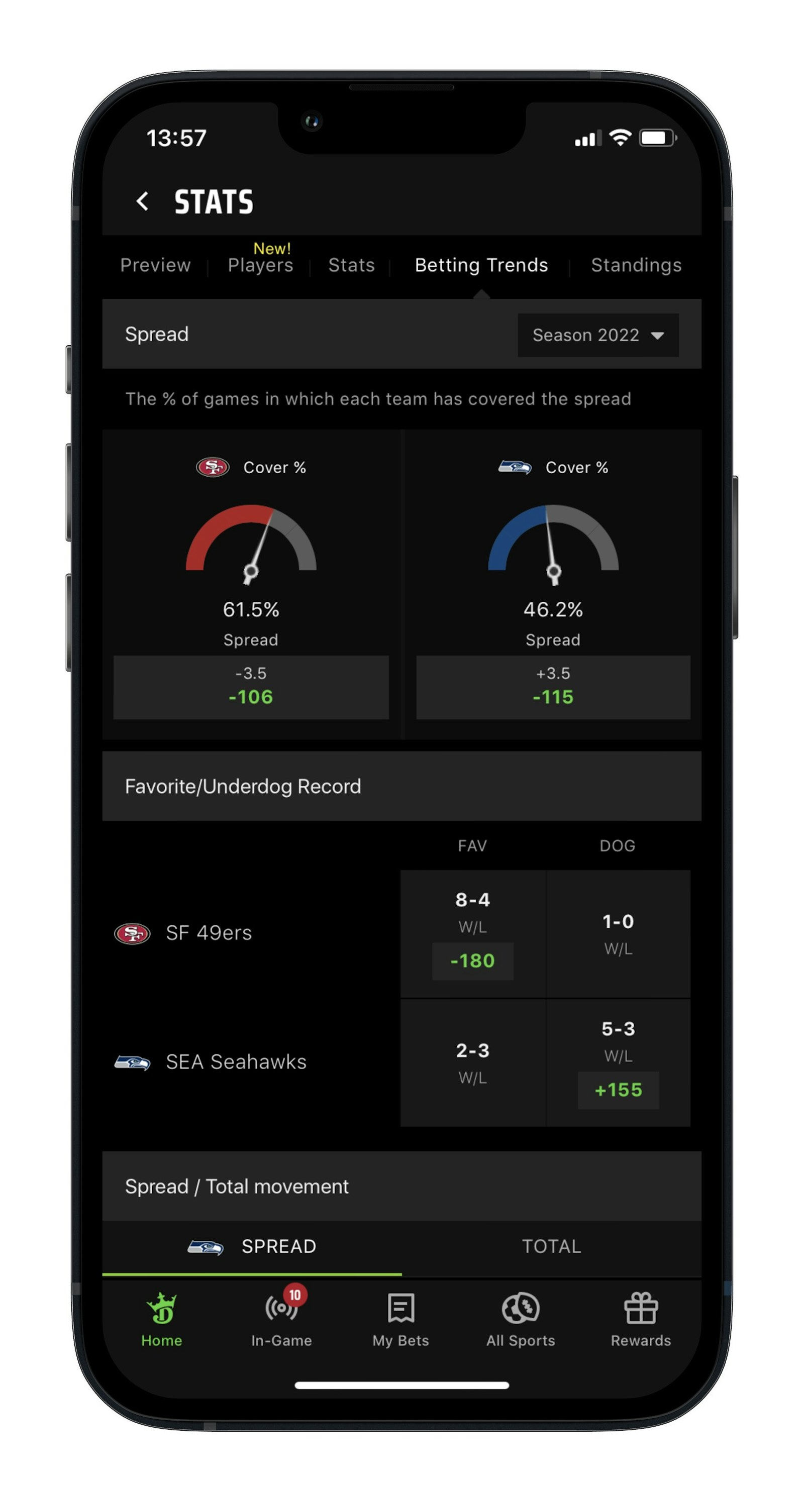 Its user-friendly interface ensures even novices can easily navigate and place bets. With competitive odds, live in-game betting, futures bets, and free-to-play pools, DraftKings Sportsbook has it all, not to mention their enticing promotions and bonuses, including odds boosts and deposit matches.
