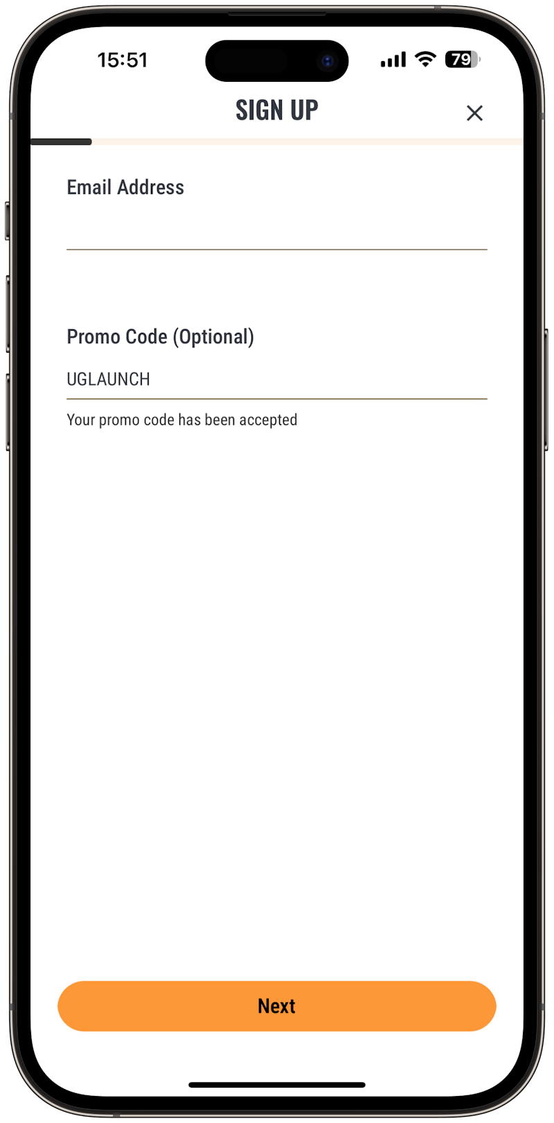The first thing it will ask you for is your email address as well as a promo code if you have one.