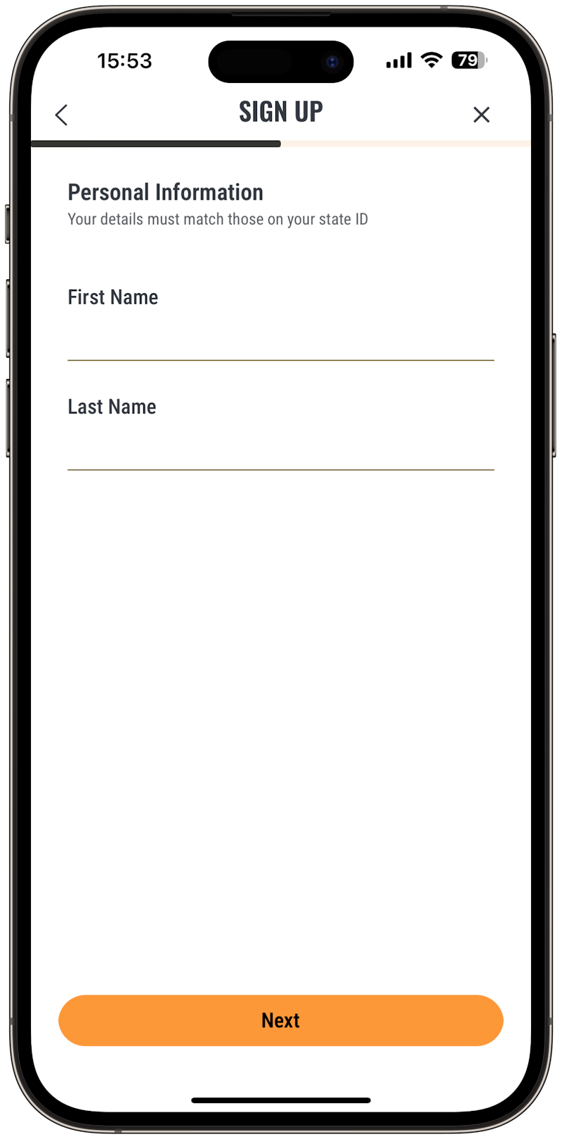 You will need to provide your full legal name, as it appears on your ID since that will be used later to verify your identity.