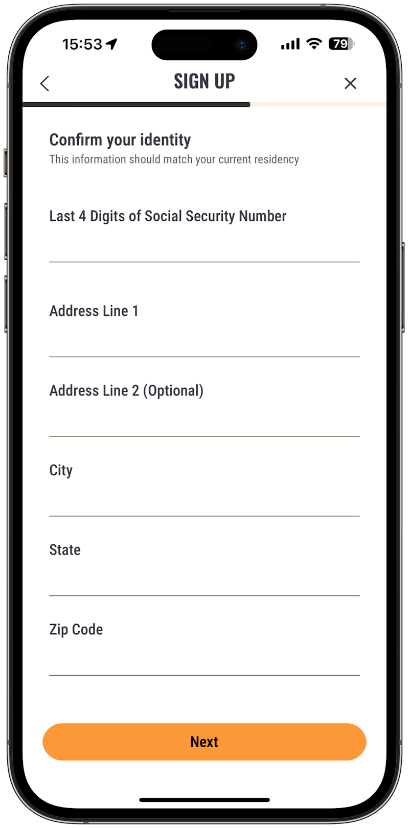Next, you will be asked to provide the following information to confirm your identity: