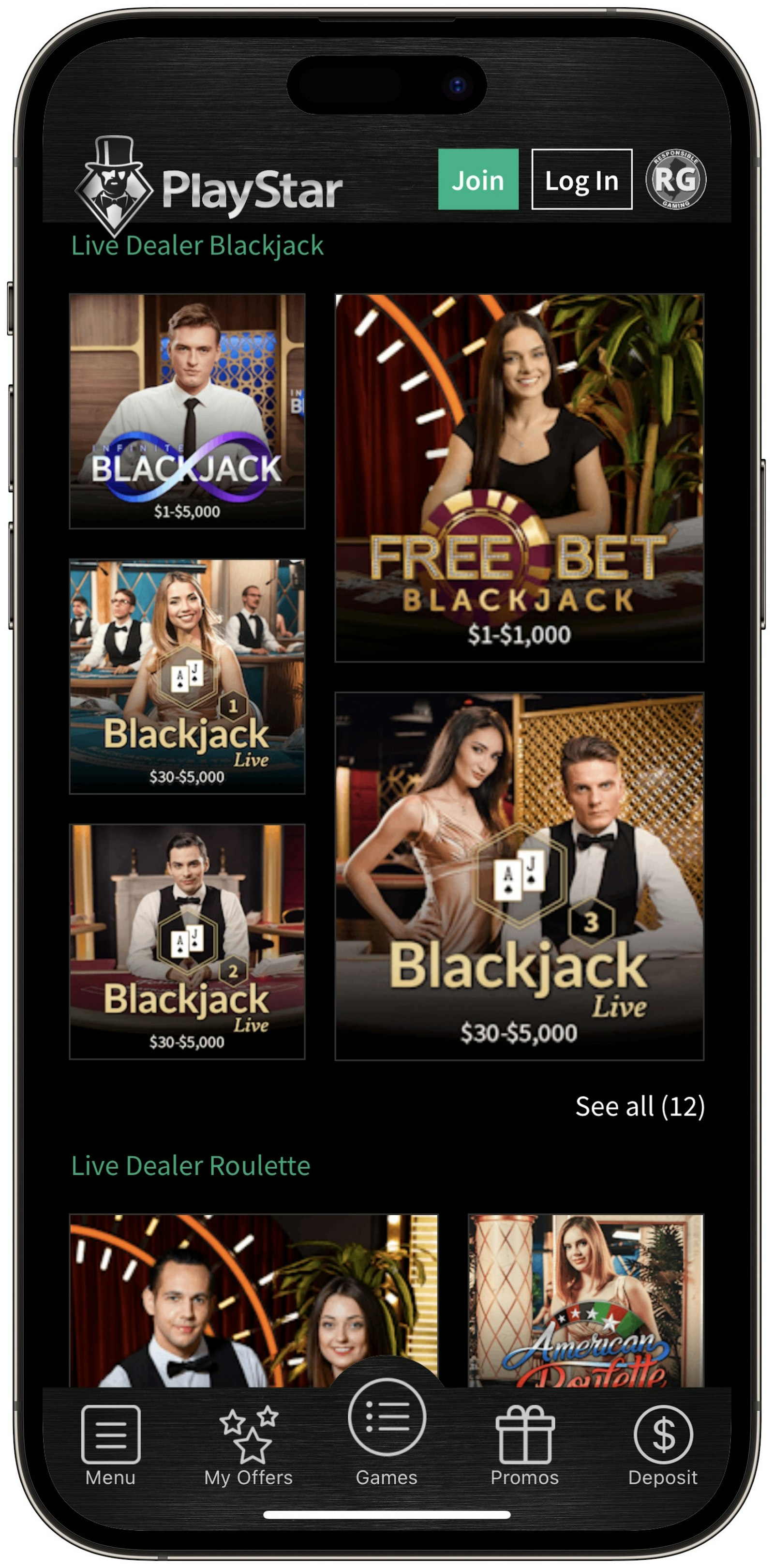 - Live Dealer Blackjack - 12 games