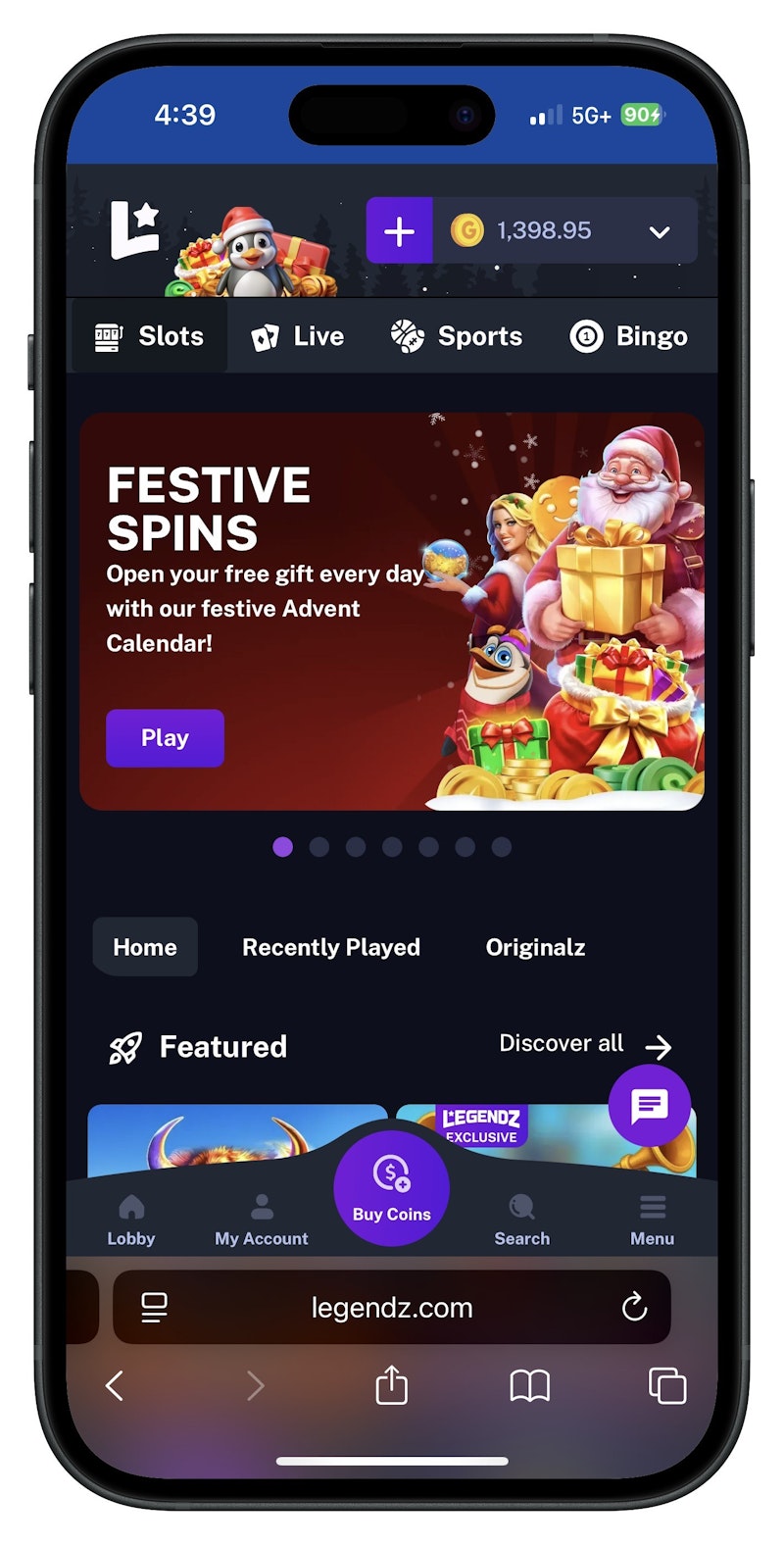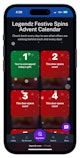 There are multiple ways to get to the Advent Calendar. Either click the play button under the Festive Spins banner or find the Festive Spins Calendar in the menu to get to the Legendz Advent Calendar.