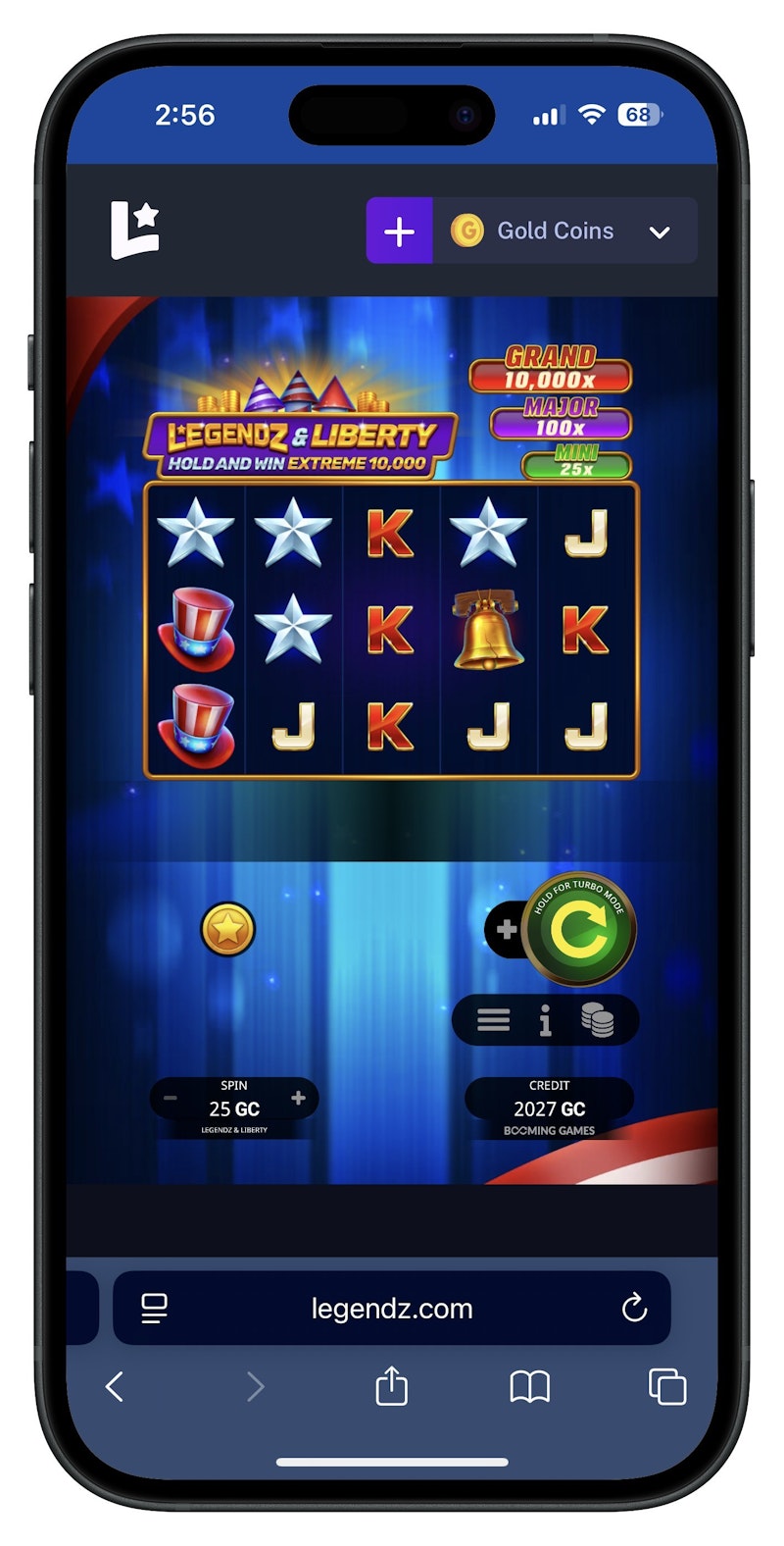 One way to qualify, which requires fewer SC, is to complete 100 spins on the exclusive Legendz & Liberty slots game. The minimum spin is 0.25 SC, so 100 spins require 25.0 total SC. Legendz & Liberty is a fixed 5x3 slot with 25 winlines.