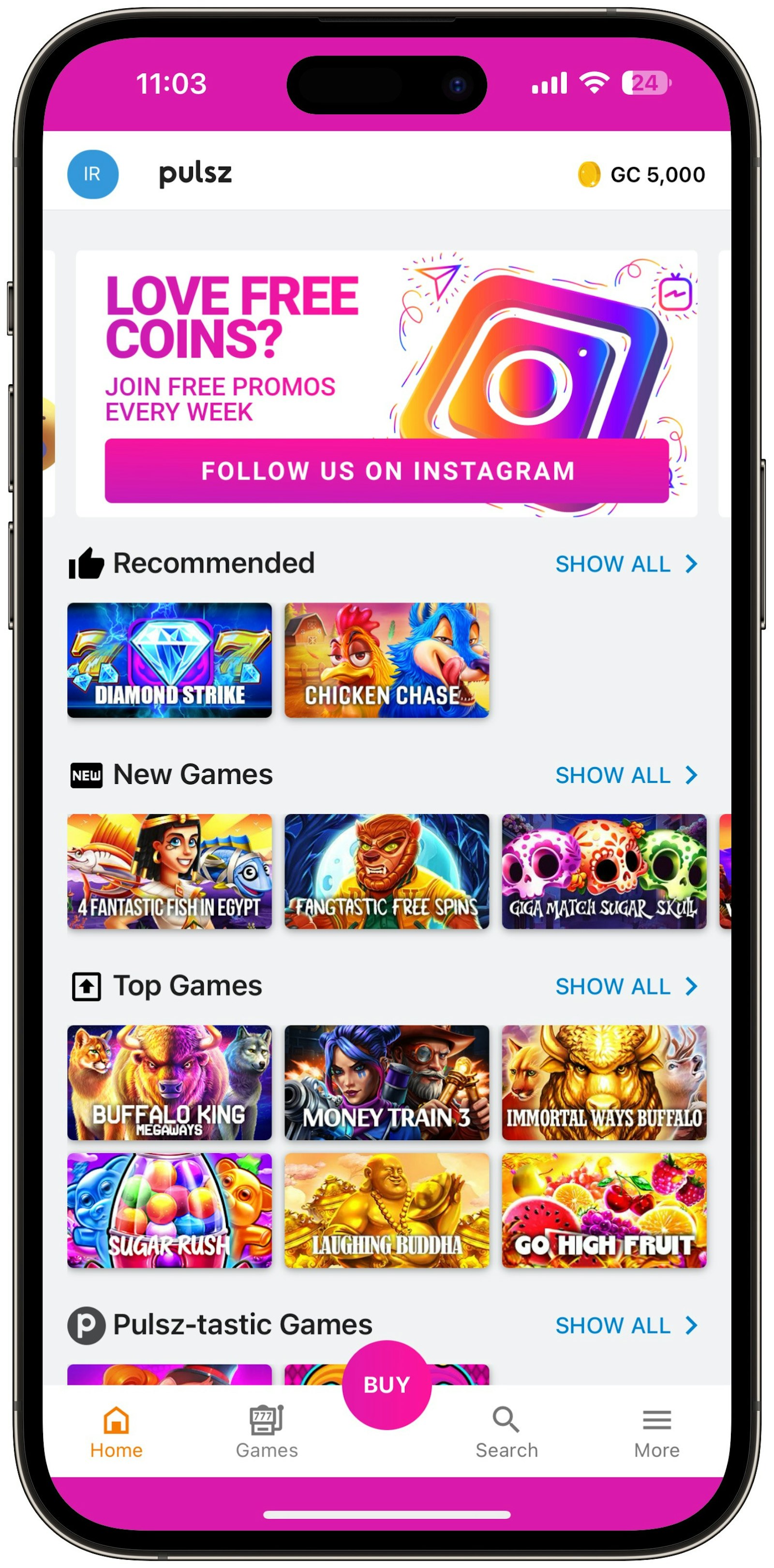 Pulsz ensures players can continue playing without constantly needing to purchase coins by offering daily log-in rewards. These daily free coins are a great way to maintain gameplay momentum and keep the fun going.