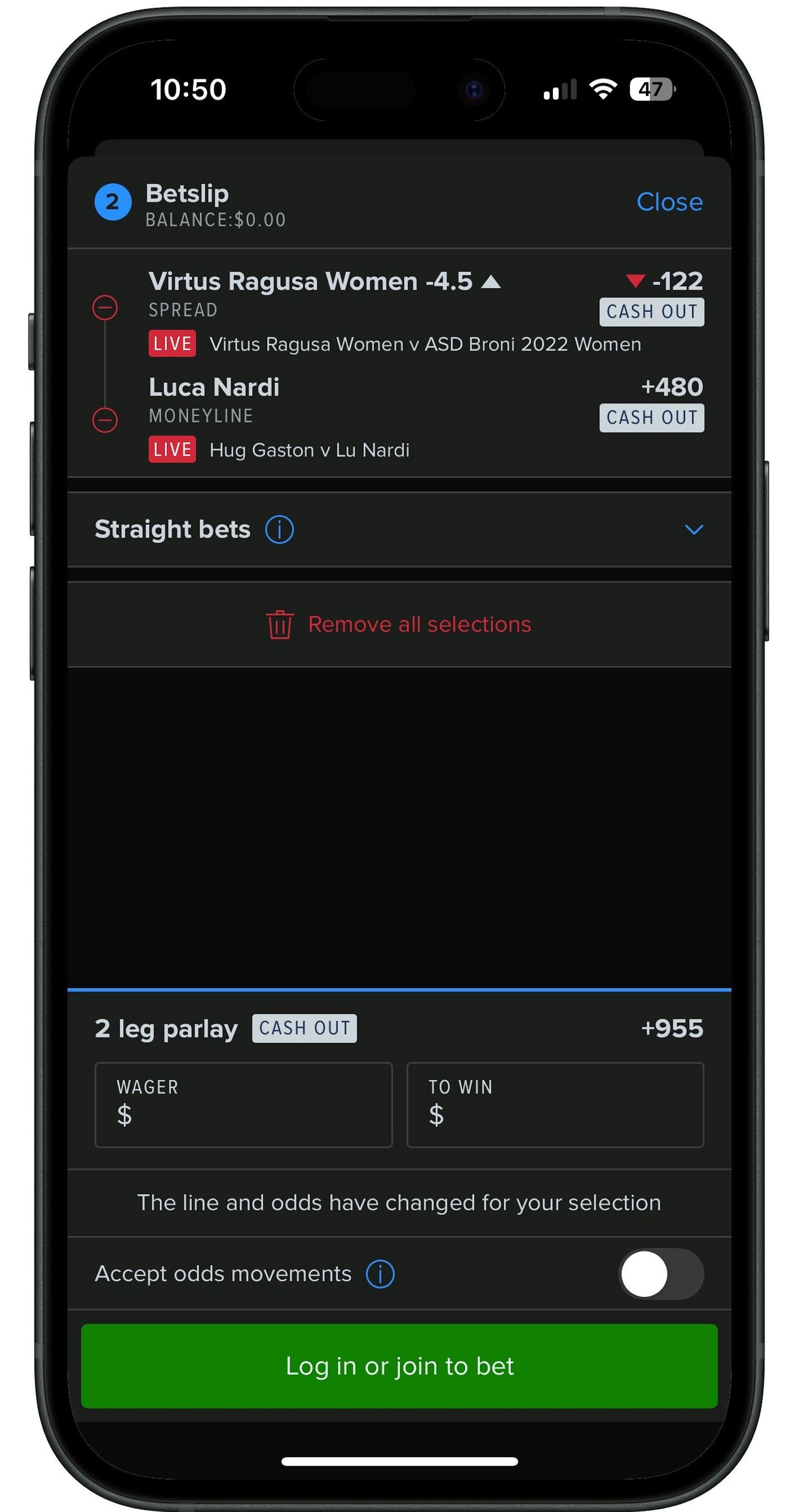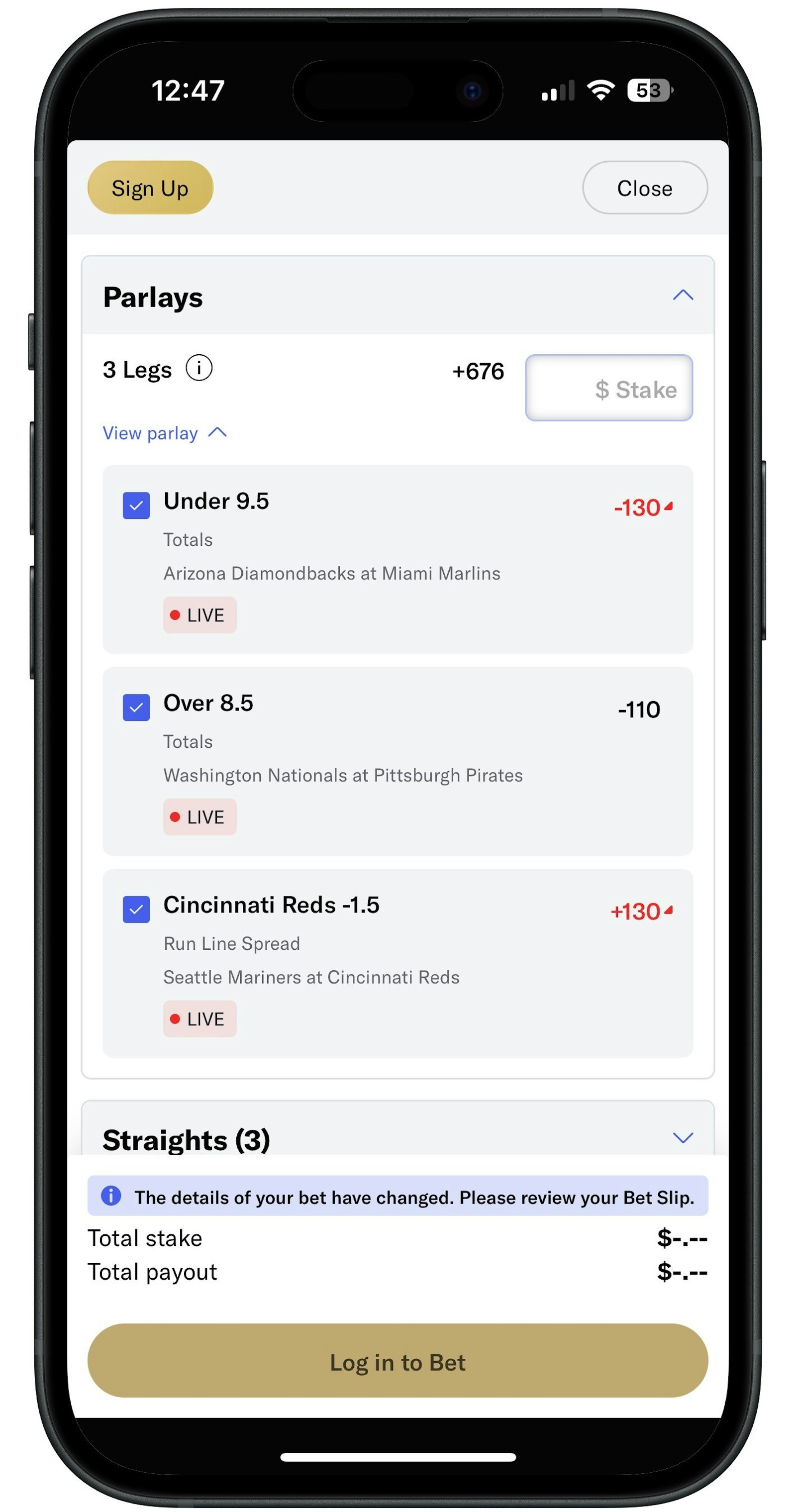 As soon as you open FanDuel, the app will tell you how many events are live in the top left. Click on that, and it’ll immediately open up with the most popular live wagers at the moment. Whether it’s based on storylines for star players or just adjusting to a high-profile event, FanDuel immediately greets customers with interesting live betting options.