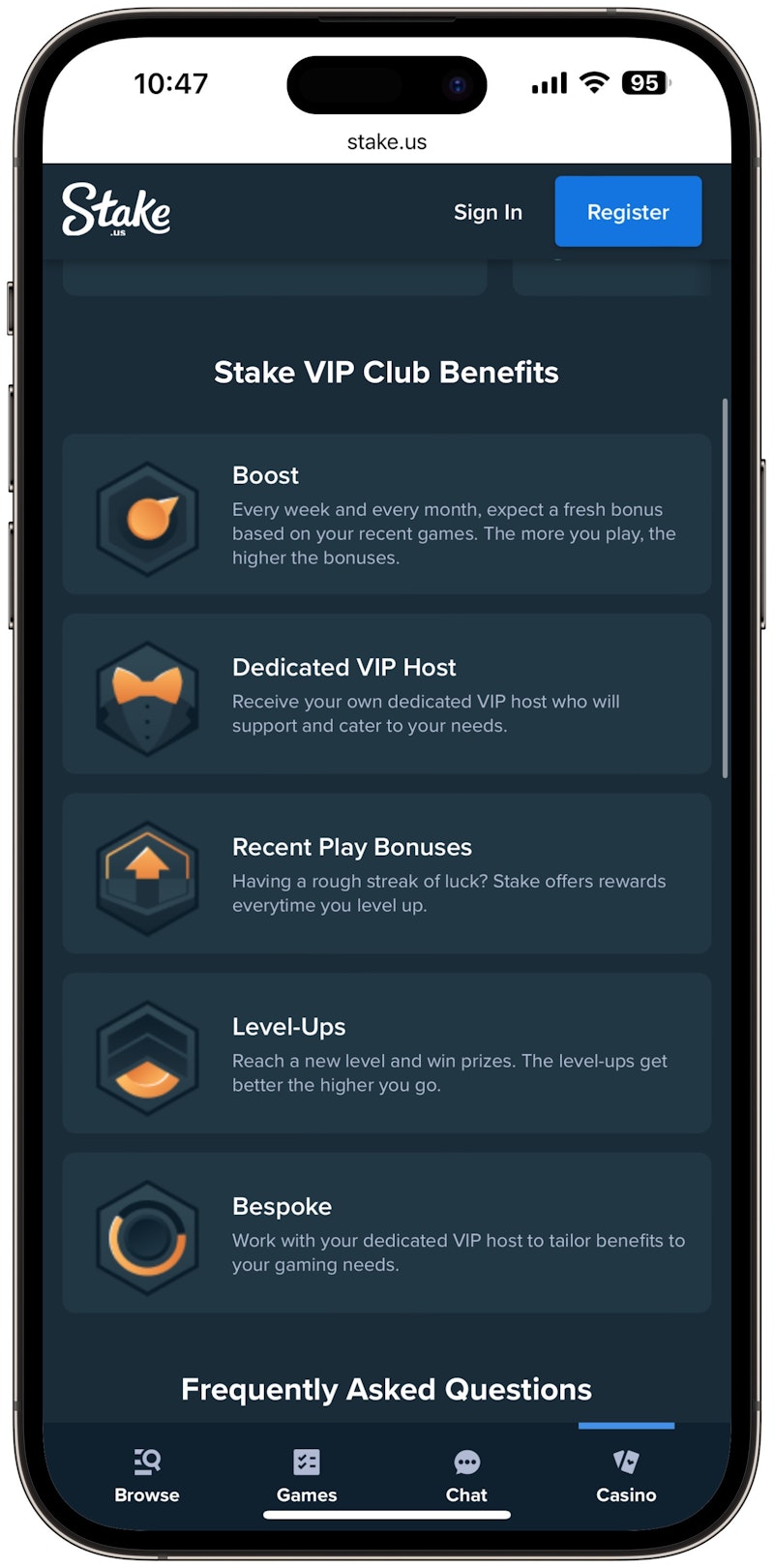 The lack of a dedicated app does result in an inferior mobile experience when compared to using the desktop version of Stake.us, with relatively slightly delayed response and loading times.